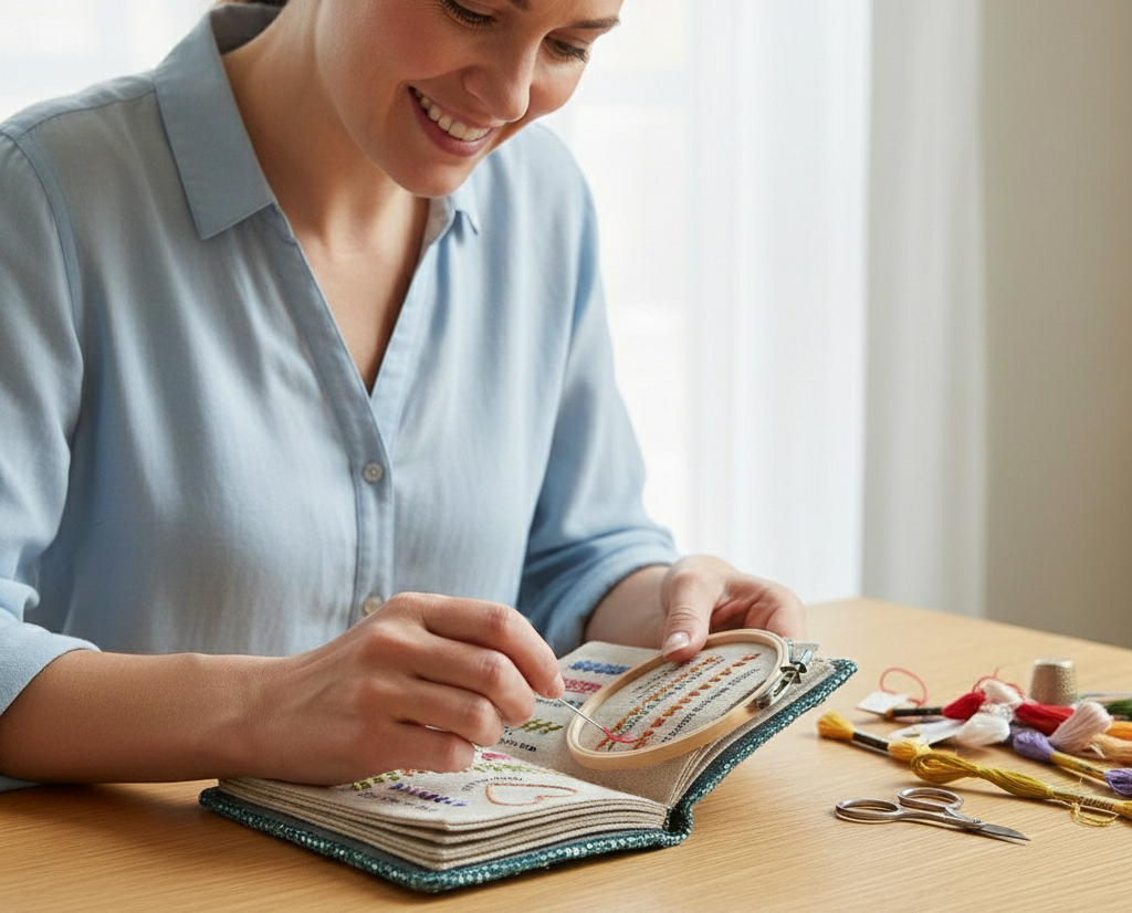 Unplug from the noise and sink into the soothing rhythm of embroidery.